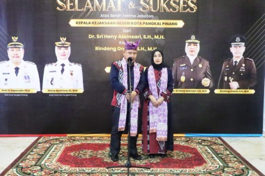 Pemerintah Kota Pangkalpinang bersama Forum Koordinasi Pimpinan Daerah (Forkopimda), menggelar malam ramah tamah menyambut Kepala Kejaksaan Negeri (Kajari) Pangkalpinang yang baru, Rindang Onasis, di Rumah Residen, rumah dinas Wali Kota Pangkalpinang, Senin (27/4/2026) malam.