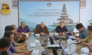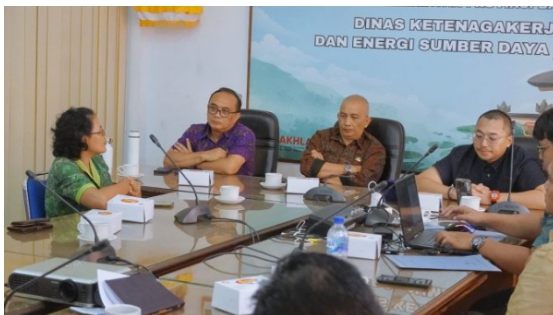 Kepala Disnaker ESDM Bali, Ida Bagus Setiawan, memimpin pertemuan yang dihadiri oleh Sales Area Manager Retail Pertamina Patra Niaga Regional Jatimbalinus wilayah Bali, Endo Eko Satryo; Sales Branch Manager IV Bali Pertamina, Zico Aldillah Syahtian; Ketua Hiswana Migas Bali, Dewa Putu Ananta; serta Ketua Tim Pengawasan Terpadu Disperindag, I Wayan Pasek Putra.