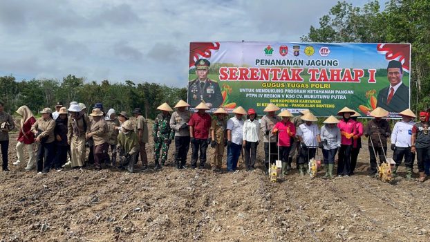 Pangkalan Banteng persindonesia.com – Dalam rangka mendukung Program Ketahanan Pangan Nasional, Gugus Tugas Polri bersama PTPN IV Region V, KSO CV Murutuwu Putra, dan Koperasi Karyawan melaksanakan Kegiatan Penanaman Jagung Serentak Tahap I di lahan seluas 5 hektar yang terletak di Dusun Semanggang, Kecamatan Pangkalan Banteng, Kabupaten Kotawaringin Barat, Kalimantan Tengah. Rabu (28/05/2025)