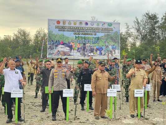 Persindonesia.com Jakarta, Penanaman Mangrove secara serentak di seluruh Indonesia oleh Bapak Presiden RI Ir. Joko Widodo secara virtual dari Taman Wisata Alam (TWA) Angke Jakarta Utara pada tanggal 15 Mei 2023 pukul 15.00 WIB dengan total penanaman 1.100.169 bibit mangrove yang tersebar di seluruh wilayah Indonesia.
