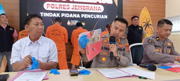 Dalam jumpa pers Kapolres Jembrana AKBP Endang Tri Purwanto didampingi Kasat Reskrim Polres Jembrana AKP Made Suharta Wijaya serta Kasi Humas Polres Jembrana mengatakan, untuk tersangka bernisial F telah mencuri sepeda motor Yamaha Nmax di Kelurahan Gilimanuk. “Saat itu tersangka mencuri Nmax didepan rumah korban, dimana motor tersebut dalam kondisi tidak terkunci setang serta kunci kontak masih nyantol,” terangnya, Rabu (9/4/2025)