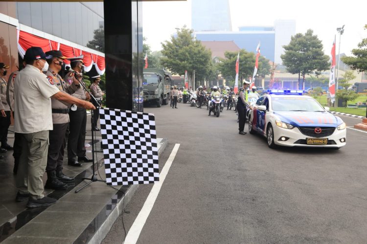 Jawa Timur ,Persindonesia.com – Polda Jawa Timur, yang dipimpin langsung oleh Wakapolda Jawa Timur Brigjen Pol Drs. Slamet Hadi Supraptoyo, didampingi pejabat utama (PJU) Polda Jatim, Sabtu (3/7/2021) pagi, memberangkatkan Patroli Show Of Force Dalam Rangka Pemberlakuan Pembatasan Kegiatan Masyarakat (PPKM) Darurat di Jatim.