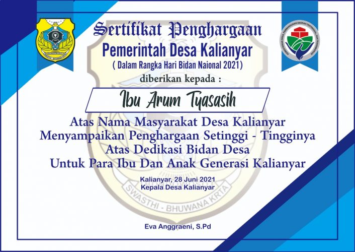 Oleh karena itu, Eva selaku Kepala Desa Kalianyar sangat mengucapkan terima kasih dan memberikan penghargaan yang tinggi untuk para bidan yang telah menjaga keselamatan para ibu warga desa Kalianyar dan para bayi generasi masa depan Kalianyar.