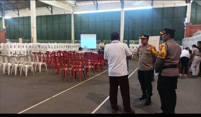 Wakapolresta Denpasar, AKBP I Made Bayu Sutha Sartana, SIK., M.H., melaksanakan pengecekan di gudang PPK Denpasar Barat guna memastikan semua persiapan terkait dengan kelancaran dan keamanan proses pemilihan berjalan dengan baik.