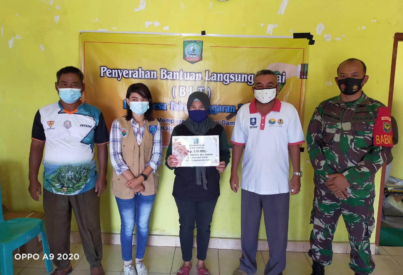 Kegiatan Pembagian Bantuan Langsung Tunai Dana Desa (BLT DD) di wilayah Kecamatan Damar Kabupaten Belitung Timur berlangsung di Aula Kantor Desa Mempaya.