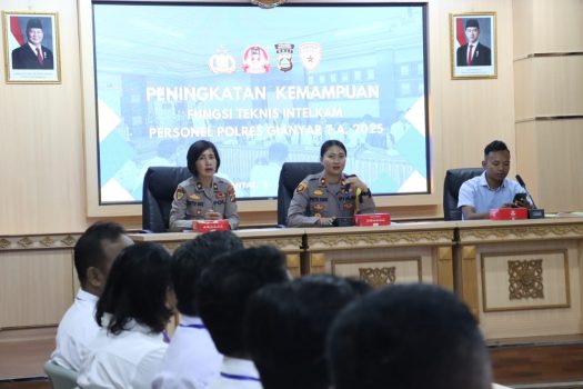 Gianyar – Polres Gianyar melaksanakan kegiatan Peningkatan Kemampuan Fungsi Teknis Intelkam Tahun Anggaran 2025 pada Selasa (8/4/2025) bertempat di Rupatama Catur Prasentya Polres Gianyar. Kegiatan yang dilaksanakan secara daring melalui Zoom Meeting ini dipimpin oleh Wakapolres Gianyar Kompol Putu Diah Kurniawandari, S.H., S.I.K., M.H., dan diikuti oleh seluruh Kanit Intelkam Polsek jajaran beserta personel Intelkam Polres Gianyar.