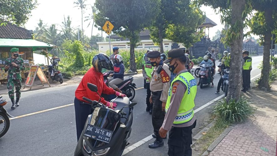 Gianyar – Kepolisian Resor Gianyar tetap memberlakukan penyekatan bagi kendaraan di beberapa jalur perlintasan dari dan menuju Kabupaten Gianyar.
