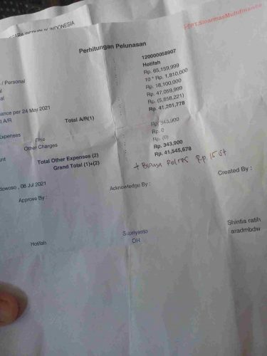 Tentunya hal ini wajib ditindaklanjuti oleh pihak Polres karena menyangkut nama baik Polres dengan adanya catatan kecil yang tercantum pada Surat Rincian Lunas PT Sinarmas tersebut.