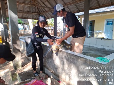 “Penyu ini ditemukan dalam kondisi lemas dan tidak memungkinkan untuk kembali ke laut. Oleh karena itu, kami memutuskan untuk membawanya ke Banyuwedang, Buleleng, untuk mendapatkan penanganan medis dari dokter hewan Jaringan Satwa Indonesia (JSI),” jelasnya.