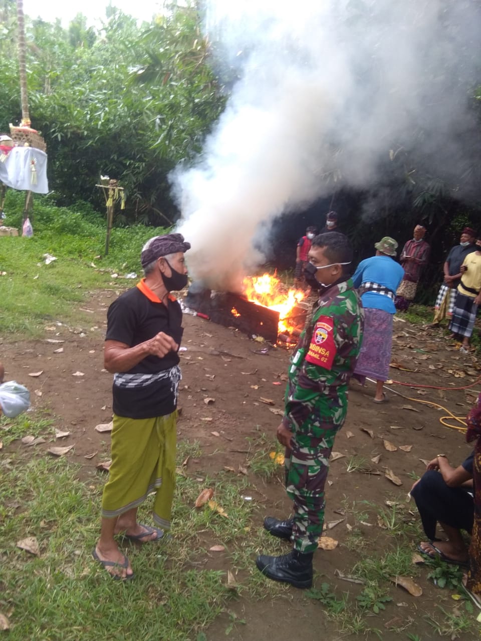 Dikatakan oleh Serda Zainal Efendi, dirinya bersama aparat terkait secara rutin terus melakukan himbauan kepada warga agar selalu mematuhi protkes. Hal tersebut sebagai upaya pencegahan penyebaran Covid 19. Kepada masyarakat yang akan melaksanakan persembahyangan saat upacara pengabenan diminta agar bergantian dan menjaga jarak hal tersebut bertujuan untuk mencegah penyebaran dan penularan virus Covid-19.