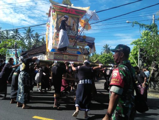 Dalam kegiatan tersebut terlihat warga melaksanakannya dengan tertib dan turut membantu dalam melakukan pengamanan kendaraan masyarakat yang datang ketempat pengabenan. (Pendim Jbr/Red).
