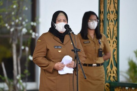 Wakil Gubernur Kepulauan Riau Hj Marlin Agustina, memimpin Apel Pagi di Lingkungan Pemerintah Provinsi Kepulauan Riau di Halaman Kantor Gubernur Kepulauan Riau, Dompak, Tanjungpinang, Senin (8/3).