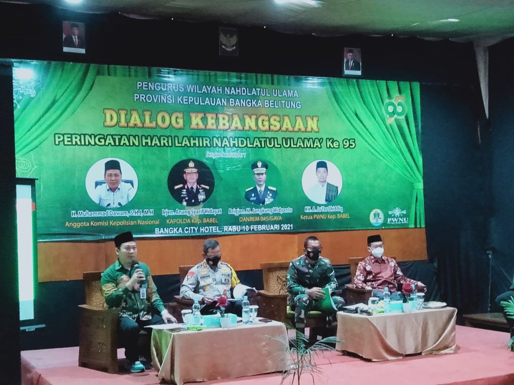 Persindonesia.com Pangkalpinang — Dalam rangka memperingati Hari Lahir Nahdatul Ulama (NU) ke-95 di Provinsi Kepulauan Bangka Belitung di gelar Dialog Kebangsaan Rabu 10/02/2021 di Hotel Bangka City Kelurahan Bacang Kecamatan Bukit Intan Pangkalpinang.