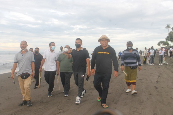 Persindonesia.com Jembrana – Gerakan bersih pantai terus digalakkan Pemkab Jembrana guna mengatasi sampah plastic, serta sebagai wujud peringatan hari Air Sedunia di Kabupaten Jembrana. Aksi kali ini menyasar tiga titik yakni pantai prancak, pantai air kuning dan pantai yeh kuning yang dipimpin langsung oleh Bupati Jembrana I Nengah Tamba bersama Majelis Desa Adat dan Aktifis peduli sampah bertempat di kawasan Pantai Perancak, Jumat (1/4). Dalam kegiatan itu mengambil tema “Memelihara dan Memanfaatkan Potensi Laut Untuk Kehidupan (Segara Kerthi) dan Meningkatkan Pariwisata Melalui Pantai Yang Bersih”.