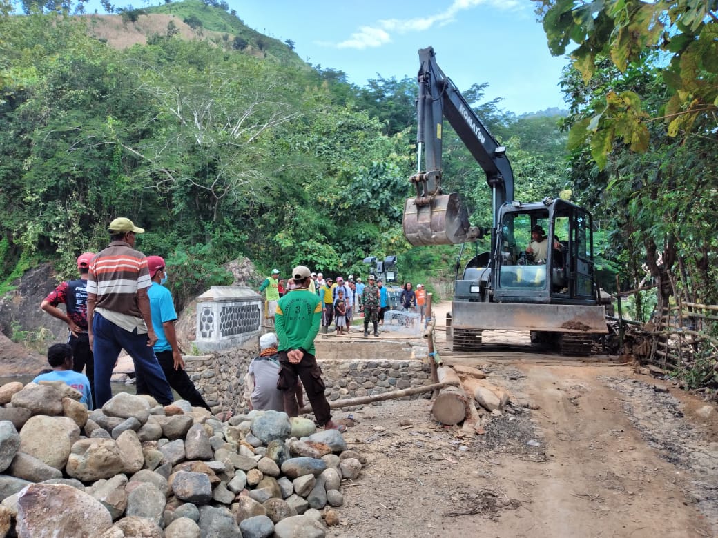 Dirinya optimis jembatan penghubung dua desa ini dapat diselesaikan prajuritnya paling lambat pada hari Senin (19/4/2021).