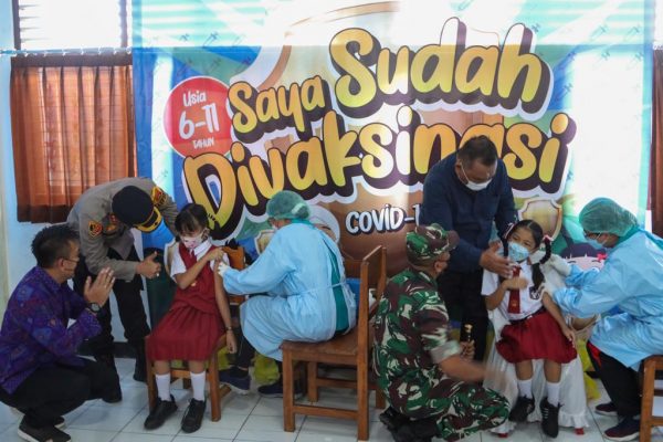 Persindonesia.com Jembrana – Pemerintah Kabupaten Jembrana menargetkan 30-35 ribu anak usia 6-11 bisa divaksinasi. Ribuan anak itu akan menerima vaksinasi jenis sinovac diharapkan tuntas selama dua minggu. Sedangkan vaksinasi perdana digelar mulai hari ini Rabu (15/12 ) bertempat di SDN 1BB Agung, Kecamatan Negara dengan menyasar 322 anak.