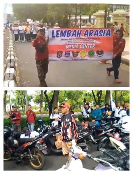 Aksi ini dihadiri oleh berbagai atribut buruh dan pekerja, Lembah Arasia tampak mencolok dengan benner berwarna merah putih serta logo dan juga ada logo dari berbagai media.
