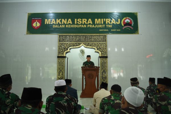 Dalam pesannya yang dibacakan Kepala Staf Korem 071/Wijayakusuma Letkol Inf Candra, S.E., M.I.Pol., pada Peringatan Isra Mi’raj Nabi Muhammad SAW 1443 H/2022 M, di Masjid Wijayakusuma, Makorem 071/Wijayakusuma, Sokaraja, Banyumas. Selasa (15/3/2022)