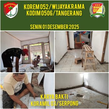 PLH Pasi Ter Kodim 0506/Tgr Mayor Inf Tubagus Halim menjelaskan, program bedah rumah mengusung tema “Manunggal Dengan Rakyat Indonesia Maju”, kegiatan ini menegaskan bahwa kemanunggalan TNI dan rakyat bukan sekadar slogan semata, melainkan diimplementasikan melalui aksi sosial nyata yang menyentuh langsung kebutuhan mendasar masyarakat.
