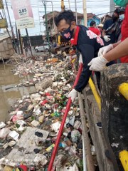Peringati HUT PDIP Ke-48 Tahun, Kader Partai Bersihkan Sampah Sungai Ciliwung di Tangerang.