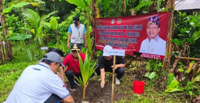 KARANGASEM Persindo (27 februari 2026)— Gubernur Bali, I Wayan Koster, melakukan penanaman bibit kelapa genjah secara simbolis di Desa Tri Eka Buana, Kecamatan Sidemen, Kabupaten Karangasem, Jumat (27/2/2026). Kegiatan tersebut menjadi bagian dari peringatan Hari Arak Bali ke-6 sekaligus upaya memperkuat ketersediaan bahan baku untuk produksi arak Bali.