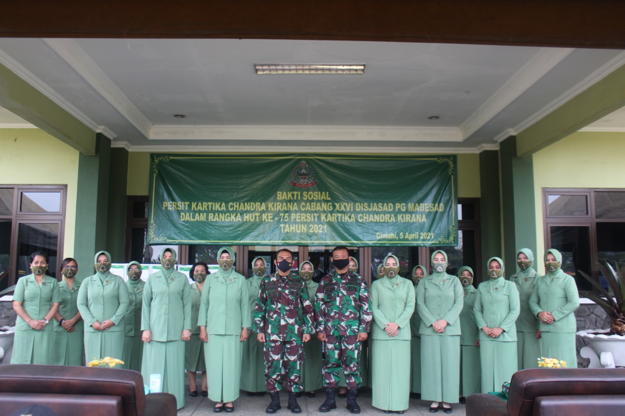 Dalam memperingati HUT Persit ke-75 ini, Persit KCK Cab XXVI/Disjasad PG Mabesad juga menyelenggarakan kegiatan bakti sosial kepada masyarakat yang kurang mampu yang berada di sekitar komplek Mako Disjasad, kepada Yayasan Gerakan Amanah Peduli Bangsa dan kepada anak jalanan yang berada di sekitar Cimahi. Kegiatan ini dilakukan adalah untuk membantu bagi mereka yang kurang mampu dari segi ekonomi terutama pada masa pandemi Covid 19 saat ini. Tidak banyak yang kami berikan namun dengan kegiatan ini kami yakin mereka sangat membutuhkan dan itulah salah satu bentuk kepedulian kami dalam kehidupan bersosial, dapat membantu sesama dan meringankan beban hidup mereka terutama bagi anak jalanan dan anak yatim piatu, tutur Ny. Diyah Khairul Anwar.M.