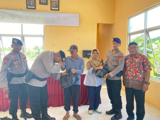 Persindonesia.com Babel, Personel Batalyon B Satbrimob Polda Kep. Babel yang dipimpin Wadanki 1 Batalyon B Pelopor, Ipda Ibnu Rifli melaksanakan giat bakti sosial hari Kamis, 04/03/2024.