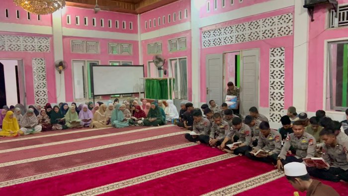 Persindonesia.com Sumbar, Personel Batalyon C Pelopor Satbrimob Polda Sumbar melaksanakan tadarus Al Qur’an bersama Jemaah Masjid Amanah kec. Sitiung Kabupaten Dharmasraya.18 Maret 2024.