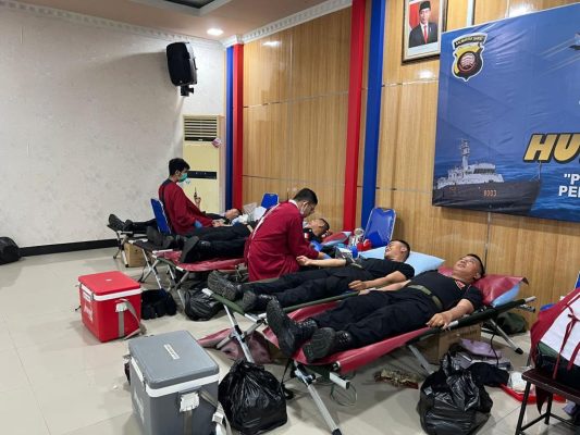 Satbrimob Polda Kalbar kembali berpartisipasi didalam kegiatan donor darah yang diselenggarakan oleh Dit Polair Polda Kalbar yang bertempat di Mako Dit Polair Polda Kalbar yang beralamat di Jl. Ahmad Yani, Kec. Siantan Hilir, Kota Pontianak. Kegiatan donor darah yang diselenggarakan oleh Dit Polair Polda Kalbar pada hari ini dalam rangka untuk memperingati HUT Polairud Ke 73. Didalam kegiatan donor darah kali ini Satbrimob Polda Kalbar mengikut sertakan sebanyak 16 orang personelnya. Selain untuk memeriahkan HUT Polairud kegiatan donor darah yang diikuti oleh personel Satbrimob Polda Kalbar hari ini juga sebagai bentuk aksi kemanusiaan untuk membantu masyarakat Indonesia khususnya masyarakat Provinsi Kalbar yang sedang memerlukan darah. Banyak manfaat yang bisa kita dapatkan ketika kita mendonorkan darah kita seperti meningkatkan produksi sel darah merah didalam tubuh kita, menjaga kesehatan jantung dan menurunkan resiko terkena penyakit pembuluh darah, membantu menurunkan berat badan, mencegah hipertensi, mencegah resiko terkena kanker serta untuk mendeteksi penyakit serius.