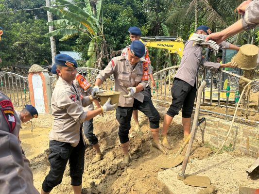 Selain pembersihan tempat ibadah, rumah warga, dan sekolah, para personel tim SAR itu juga membersihkan sepanjang drainase yang dipenuhi tumpukan sampah, agar dapat mencegah terjadinya banjir kembali saat hujan turun.kata Kompol Doni Lisman,S.H.