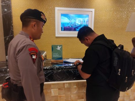 Persindonesia.com Medan, Sat Brimob Polda Sumut || Personil Detasemen Gegana Sat Brimob Polda Sumatera Utara melaksanakan kegiatan sterilisasi di Hotel Adi Mulia Medan dalam rangka kunjungan Menteri Koordinator Bidang Politik, Hukum, dan Keamanan (MENKOPOLHUKAM) di wilayah Polda Sumut. Kegiatan ini dipimpin oleh IPDA Jujun Lesser Berutu, S.H. Senin (08/07/2024).
