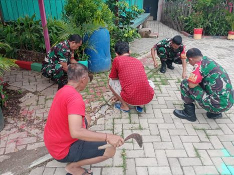 “Dalam kerja Bakti tersebut personil TNI Koramil 01/Tgr tidak lagi mengangkat senjata, melainkan mengangkat cangkul, sabit, mesin babat rumput, linggis dan bangkil untuk membersihkan lingkungan,” ujarnya.