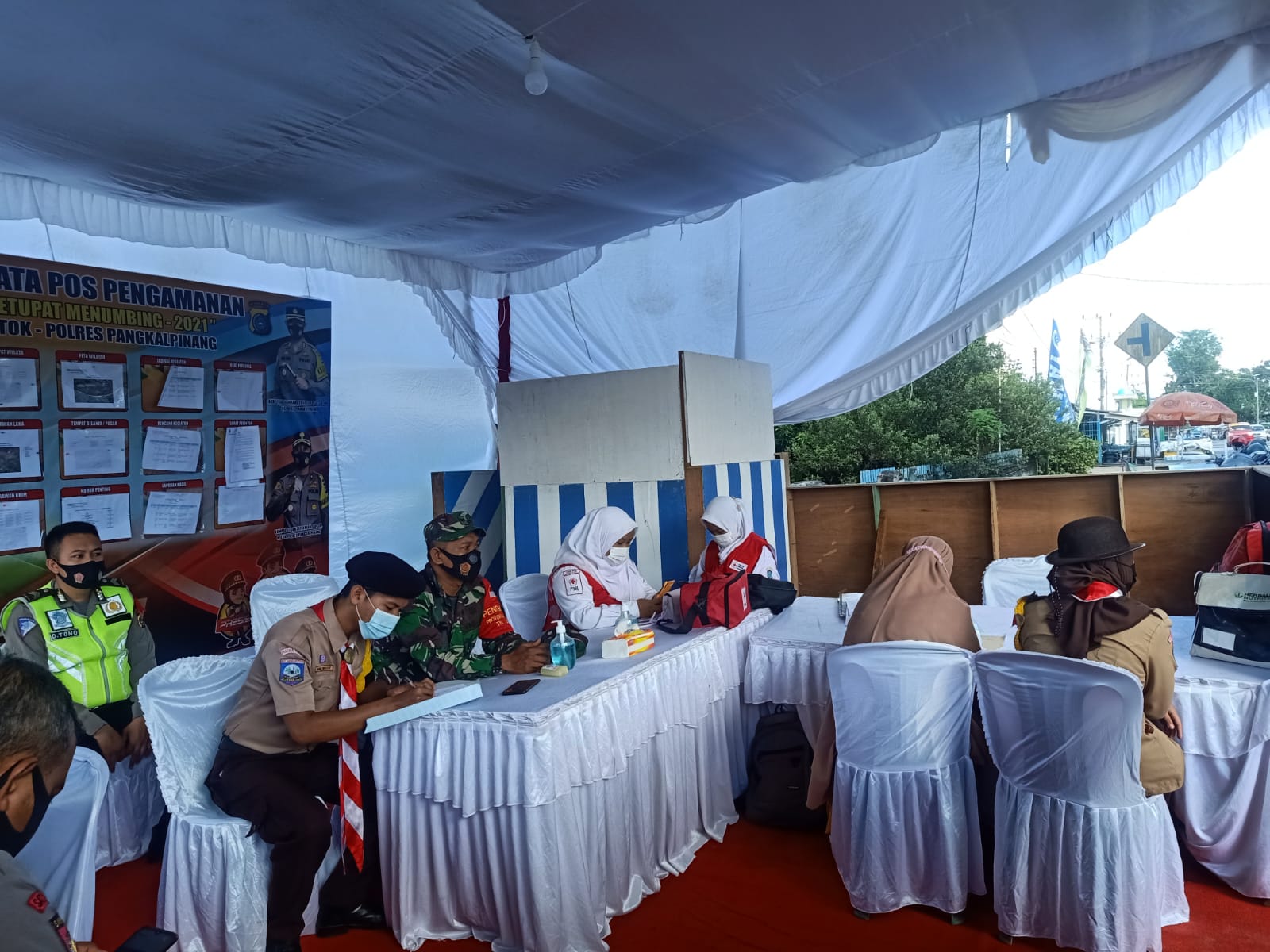 Tampak dalam pelaksanaan Pam Ops Ketupat Menumbing 2021 setiap pos diperkuat oleh personil TNI,Polri,Dishub,PMI, Puskesmas dan Pramuka.