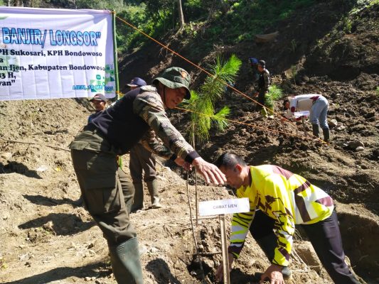 Hari ini Kami dari jajaran Perum Perhutani bekerjasama dengan Forkopimcam kecamatan Ijen – Bondowoso melakukan kegiatan penanaman atau penghijauan disekitar lokasi longsor , Kami berharap dalam jangka waktu 2 atau 3 tahun kedepan lokasi ini sudah dipenuhi dengan rimbun pepohonan yang dapat mencegah erosi,banjir dan tanah longsor sehingga tercipta suasana sejuk damai dan aman bagi masyarakat sekitar dan pengguna jalan, untuk itu kami mohon dukungan penuh dari seluruh lapisan masyarakat untuk ikut serta berperan aktif dalam rangka merawat sekaligus menjaga agar tanaman ini bisa tumbuh dan berkembang dengan baik sehingga dapat memberikan fungsi dan manfaat secara lestari pada seluruh masyarakat.
