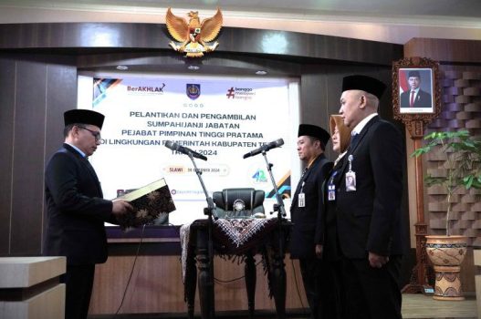 Persindonesia.com Tegal – Penjabat (Pj) Bupati Tegal, Agustyarsyah, menggarisbawahi sejumlah pekerjaan penting di sektor pelayanan publik yang harus segera ditangani, termasuk perbaikan lampu jalan, peningkatan fasilitas publik, dan perluasan lapangan kerja. Pesan ini disampaikan saat melantik tiga pejabat pimpinan tinggi pratama di lingkungan Pemerintah Kabupaten (Pemkab) Tegal, Rabu (30/10/2024), di Ruang Rapat Bupati.