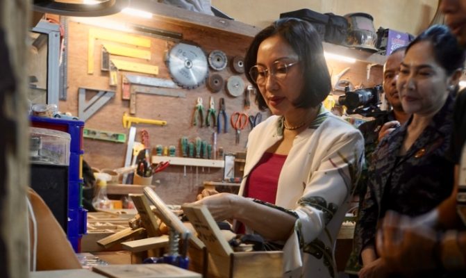 JEMBRANA- Penjabat Ketua Dewan Kerajinan Nasional Daerah (Dekranasda) Provinsi Bali, Ny. drg. Ida Mahendra Jaya melakukan kunjungan kerja ke beberapa IKM (Industri Kecil dan Menengah) di Kabupaten Jembrana pada Rabu, 24 April 2024. Terdapat 4 (empat) IKM yang dikunjungi oleh Pj. Ketua Dekranasda Bali beserta jajarannya di Bumi Makepung tersebut antara lain IKM Rocke Handycraft di Desa Medewi-Kecamatan Pekutatan, IKM Bali Rajut di Kelurahan Sangkaragung-Kecamatan Jembrana, IKM Looka Swarna di Desa Batuagung-Kecamatan Jembrana dan IKM Tunjung Mas di Desa Tukadaya-Kecamatan Melaya.