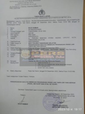 Tangerang Selatan, Persindonesia.com– Disinyalir salah seorang yang sebelumnya mengaku keponakan pemilik sertifikat atas nama Azwar Johar dan selanjutnya mengaku sebagai Penasehat hukum membongkar paksa plang Kepemilikan tanah ahli waris atas nama Namar bin Rein pada Minggu (03/12/2023) di daerah kelurahan pondok benda Pamulang Kota Tangerang selatan , atas kejadian tersebut ahli waris atas nama Namar bin Rein melaporkan kejadian tersebut ke Polres Tangsel .
