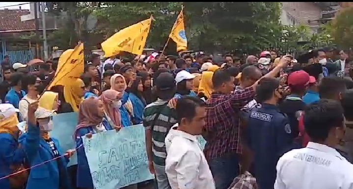 BONDOWOSO, Persindonesia – Aktivis Mahasiswa yang tergabung dalam Pergerakan Mahasiswa Islam Indonesia (PMII) Kabupaten Bondowoso, menggelar aksi demonstrasi menolak kenaikan harga BBM. Selain itu, salah satu tuntutannya adalah soal carut marut distribusi pupuk subsidi di Bondowoso, Senin (5/9/202).
