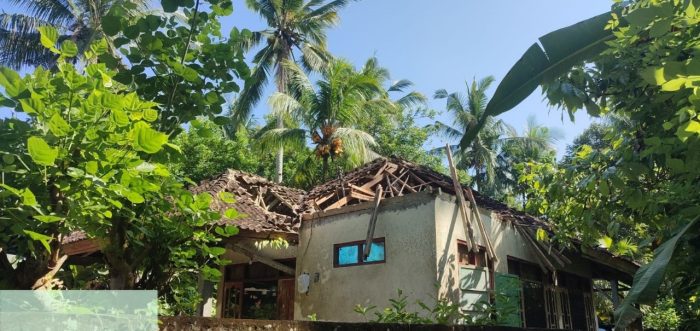 Dari hasil asesmen di lokasi, diketahui rumah yang terdampak adalah milik Ida Bagus Putu Muliana. Bangunan seluas 9 x 6 meter persegi itu mengalami kerusakan setelah tertimpa pohon kelapa yang batang bagian bawahnya diketahui sudah rapuh.