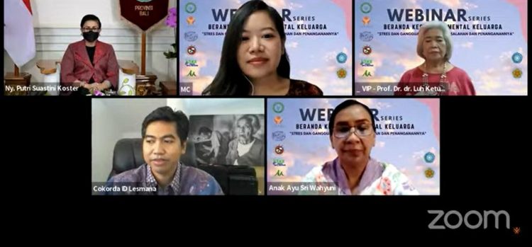 Denpasar (Persindo) – Ketua TP PKK Provinsi Bali Ny. Putri Suastini Koster didaulat sebagai Keynote Speaker dalam acara Webinar Series Beranda Kesehatan Mental Keluarga, “Stres dan Gangguan Cemas: Permasalahan dan Penanganannya” yang diselenggarakan secara daring oleh Perhimpunan Dokter Spesialis Kedokteran Jiwa Indonesia (PDSKJI) Cabang Bali yang bekerjasama dengan TP PKK Provinsi Bali, pada Sabtu (19/3).