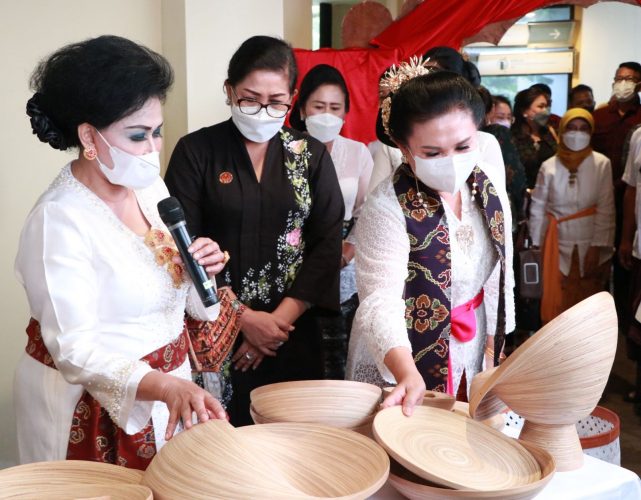 Ny Nanny Hadi Tjahjanto juga meminta agar para perajin meningkatkan terus hasil kerajinannya sehingga kerajinan kita bisa menjadi tuan rumah di negara sendiri. Terlebih Bali dipercaya menjadi tuan rumah penyelenggaraan KTT G20 yang sudah mulai akhir tahun ini hingga tahun 2022, dan ini merupakan peluang besar bagi IKM dan UMKM Bali untuk memperkenalkan produk terbaik mereka hingga ke mancanegara.