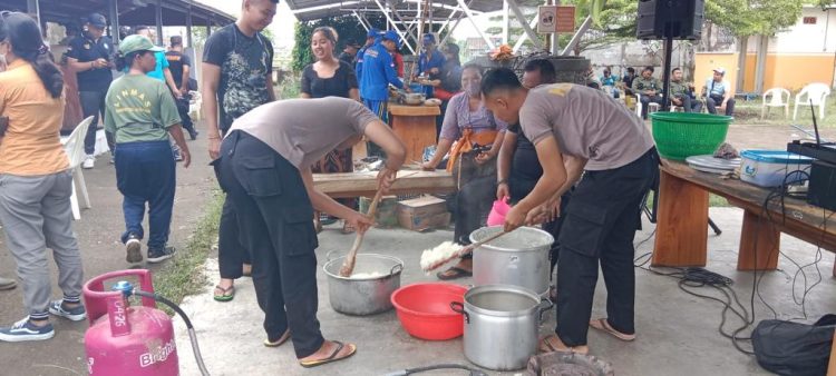 Dengan 12 orang personel Brimob Polda Bali dan dibantu masyarakat, memasak dan mengemas (bungkus) masakan tersebut, untuk kemudian dibagikan kepada 322 jiwa, korban dari bencana banjir bandang tersebut.