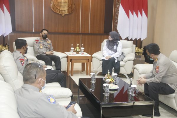 Denpasar (Persindo) – Kapolda Bali Irjen. Pol. Drs. I Putu Jayan Danu Putra, S.H., M.Si sambut kedatangan Kepala Kantor Pelayanan Perbendaharaan Negara (KPPN) Denpasar Sri Martini beserta staff KPPN Denpasar di Mapolda Bali. Kamis (24-2-2022)