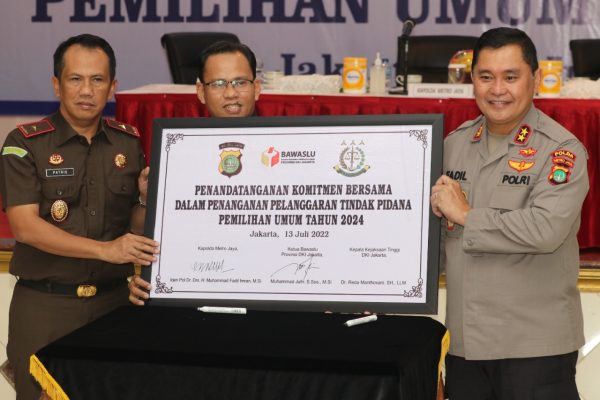 Persindonesia.com Jakarta – Bertempat di Gedung Balai Pertemuan Metro Jaya Kapolda Metro Jaya Irjen Pol. Dr. MOH. FADIL IMRAN, M.Si. memimpin Rapat Koordinsi dengan Bawaslu DKI Jakarta dan Kejati DKI Jakarta terkait Penanganan Pelanggaran Tindak Pidana Pemilu 2024. Rabu, (13/7/2022)