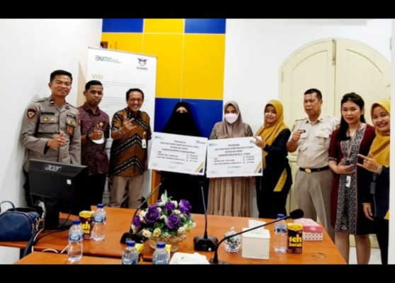 Penyerahan santunan resiko kematian diterima ahli waris yang juga istri dari almarhum dengan dihadiri dan disaksikan oleh Kasubagkhirdinlur Biro SDM Polda Sulteng Pembina Indra Irawan, S.H., Plt. Kepala Asabri Palu Nur Alam, S.E., Kepala Bank Bukopin Palu Faisal, bertempat di Aula Kantor PT. Asabri Palu, Selasa (29/11/22).