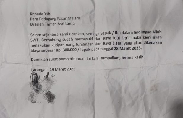 “Untung cepat lapor, upaya pemalakan dengan modus THR bisa di cegah di Pasar Malam Taman Asri Lama Cipadu Kota Tangerang,” kata Zain melalui pesan singkatnya. Rabu (29/3/2023) pagi.