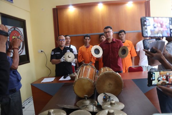 BULELENG-PersIndonesia.Com- Empat pelaku pencurian seperangkat Alat Gambelan (Gong) di Pura Kawitan Pasek Gelgel, Banjar Dinas Pasar, Desa Anturan, Kecamatan Buleleng, Kabupaten Buleleng berhasil ditangkap SatReskrim Polres Buleleng. Pelaku yang ditangkap yaitu Kt Gunaya, PT JK Anjasmara, KD Perdiyasa dan KME (masih di bawah umur).