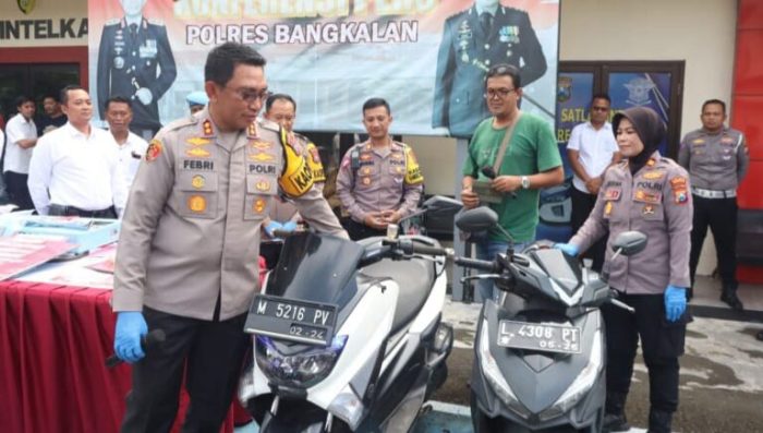 Selain melaksanakan konferensi pers ungkap kasus, AKBP Febri juga menyerahterimakan 2 motor yang ditemukan oleh Polres Bangkalan saat razia.