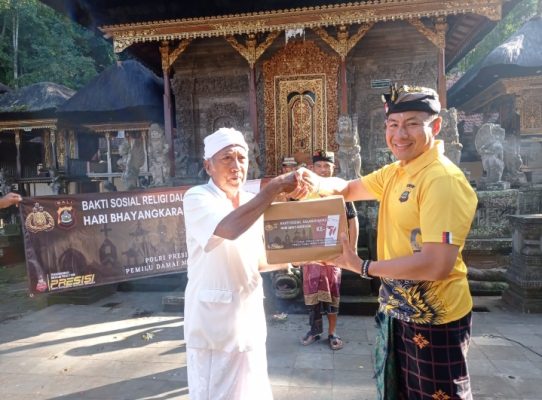 Pihak pengurus dan Pemangku pura setempat mengapresiasi kegiatan Bakti Sosial Religi yang diselenggarakan Polres Bangli dan mengucapkan selamat hari Bhayangkara ke – 77 semoga Polri jaya kedepannya