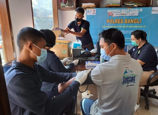 Polres Bangli – Dalam rangka Memperingati hari Bhayangkara ke 77, tanggal 1 Juli 2023, progam vaksinasi terus berlanjut dilakukan oleh Tim Si Dokkes klinik Bhayangkara Polres Bangli. (sabtu 17/6)